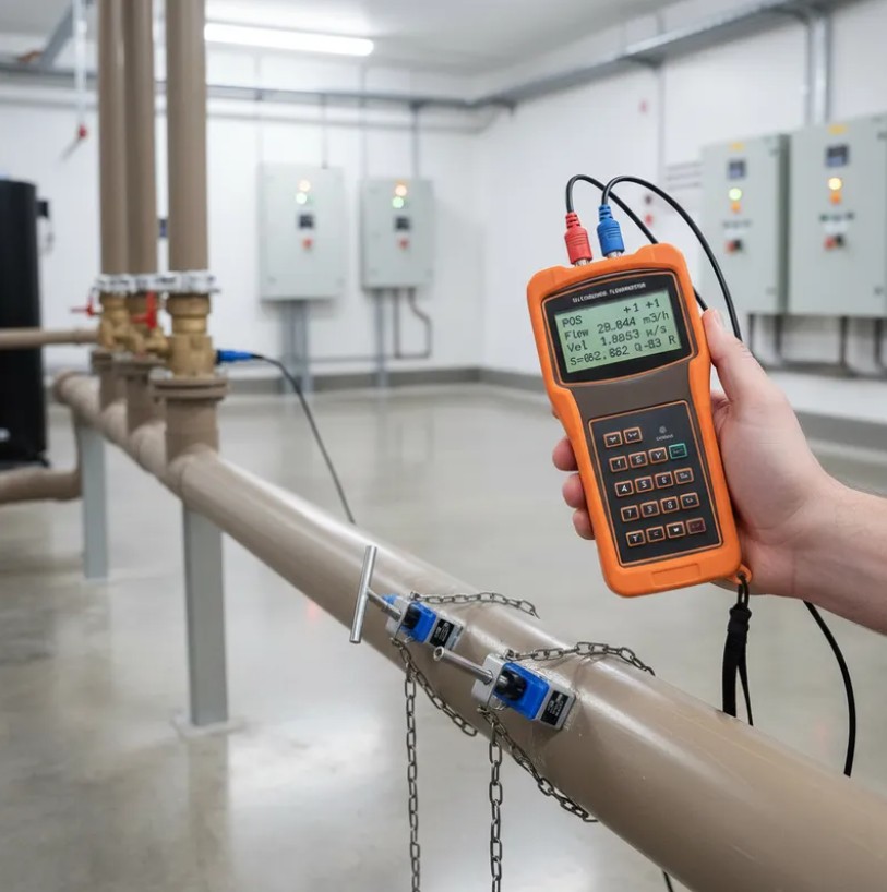 Basta colocar os sensores do medidor de vazão ultrassônico na parede do tubo, e você já consegue medir a vazão do fluxo.